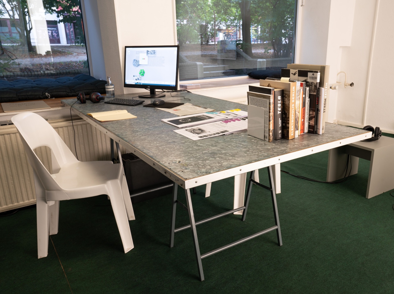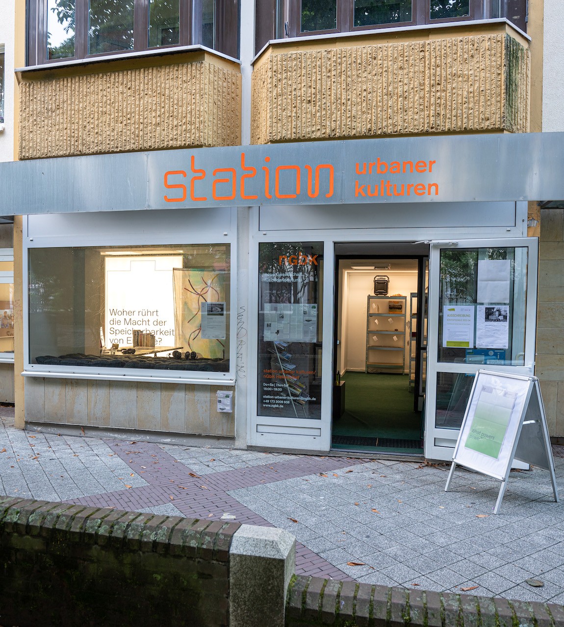 For the duration of The Driving Factor, station urbaner kulturen/nGbK Hellersdorf was transformed into a 'storage' where new and existing artistic works, research materials, podcasts from the project group, and impressions of the tours were gradually stored and presented in different contexts.